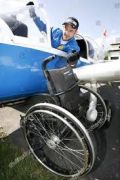 | Her fighting spirit was rekindled watching small planes flying overhead. She made a decision: 'If I can't walk, I'll fly.' And fly she did. While still covered in a full body plaster cast, Janine was lifted into an aircraft for her first flight. That moment changed her life forever. |