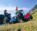 | SWISS-TRAC is a small, efficient wheelchair power unit, which can be quickly attached to/from the wheelchair. It pulls the wheelchair user over "sticks and stones" or over curbs without any problems. SWISS-TRAC can be driven not only on pavements and in pedestrian areas, but also through fields, meadows and woodlands. A day out at the zoo, a visit to a large exhibition or a shopping centre suddenly becomes a pleasure. |